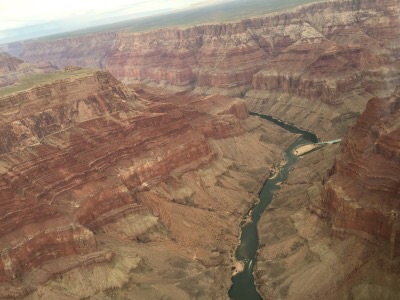 Tak toto je ten komfort ktorý spomínali. V slúchadlách hrá U2 – It’s a beautiful day a my štartujeme z letiska. Slúchadlá aktívne rušia hluk motora. Toto ma fakt prekvapilo. Príjemne prekvapilo. Nasleduje prelet ponad lesom a blížime sa k okraju kaňonu. Prelietame cez okraj pomerne nízko a zrazu je pod nami skoro 900 metrov vzduchu … a celý kaňon s riekou na spodku, ktorá sa vynie pomädzi kamene a z tejto výšky vyzerá len ako horská bystrinka. Rieka Colorado.