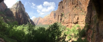 Hor sa do Zionu na prehliadku kaňona. Všetko prebehlo podľa plánu a sedíme v autobuse. Previezli sme sa na konečnú a potom späť k Weeping Rock. Je to krásna výhliadka. Spolu len 30 minút chôdze.